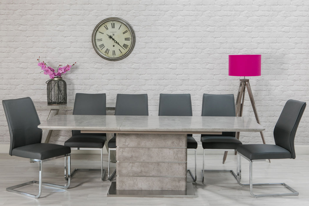 - Dining table / Melamine concrete board / Brushed stainless steel base