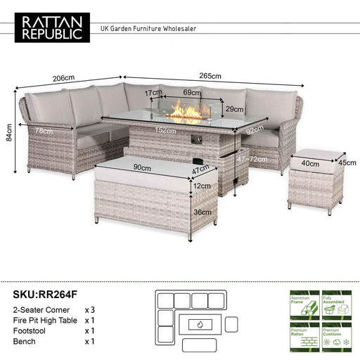 Rattan RepublicThe Havana Range High Back Right Hand Corner Sofa Set with Fire Pit Adjustable Table combines elevated comfort, practical dining functionality, and...