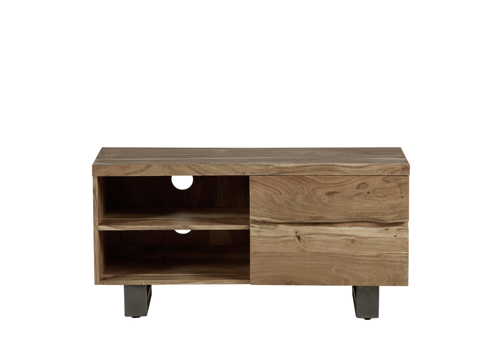Elevate your home with charm through this elegant and distinctive range. Highlighted by live edges on the table tops, mirroring the natural shape of the wood, the collection is enriched with sturdy sled-shaped metal frame legs, offering a unique and appealing feature.