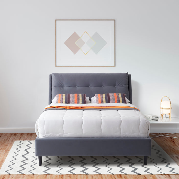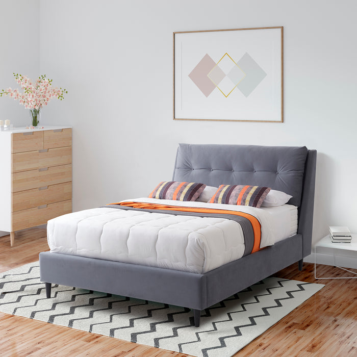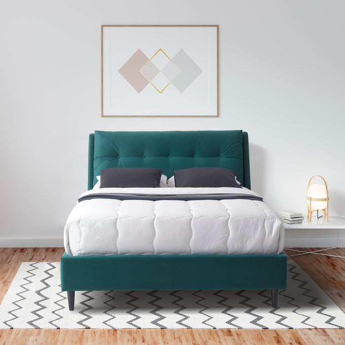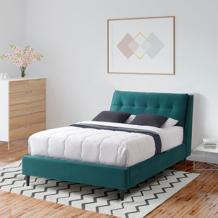 The Hampton Bed exudes sophistication and glamour, elevating any bedroom design. Its buttoned pillow headboard is expertly upholstered in luxurious velvet fabric, available in rich decadent colours of Blue, Grey, and Green. With a low foot end, it offers optimal space to walk around and admire its presence. Simply dress this bed to impress and make it the statement centrepiece you've always desired.